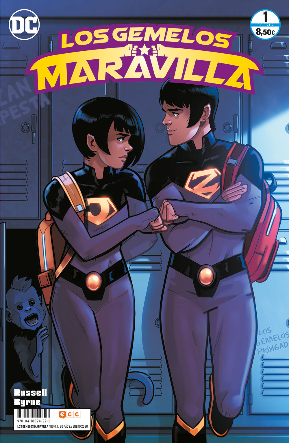 En ese sentido, el dibujo de Byrne es divertido y juguetón, y sabe colocar a Zan y Jayna tanto en el entorno superheroico como en su entorno civil. Su mejor cualidad está en que podamos tomarnos moderadamente en serio a la pandilla de pintorescos malos a los que hacen frente los gemelos, o incluso la presencia de un ordenador parlante o del propio Gleek. Sin ser una serie que apueste por grandes escenas de acción, las que tiene las resuelve de una manera simpática y acertada, sobre todo la del tercer número, la que da más protagonismo al mono. Quizá lo más curioso, en ese sentido, es la versión que hace de los grandes mitos, de Superman, Batman o Wonder Woman, que parecen en sus lápices más terrenales que de costumbre. Quizá sea el peaje que hay que pagar para que la atención del lector no se vaya a ellos y se disperse de lo que tiene que tener importancia en esta serie, que por fuerza tienen que ser los gemelos, pero en cualquier caso el trabajo que hace es bueno. Los Gemelos Maravilla arranca cumpliendo lo que promete y no engaña a nadie, su mayor virtud es la sinceridad con la que se desarrolla y el respeto que siente por personajes que, tampoco hay por qué negarlo, cuesta ver como protagonistas de una serie que tenga un tono distinto al que realmente tiene la propuesta de Russelll y Byrne.