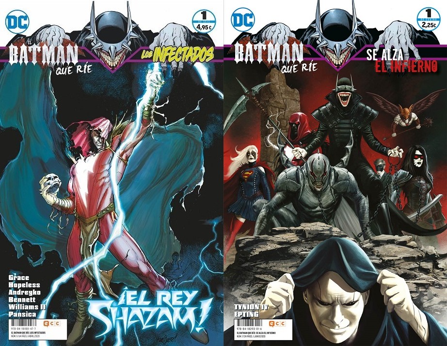 Desde la irrupción del personaje en Noches oscuras. Metal, es bastante obvio que el Batman que ríe se ha convertido en una marca que se quiere explotar hasta el infinito. Ni Se alza el infierno ni Los infectados llevan en sus originales americanos esa marca en su portada, pero en la edición española se ha optado por ese encabezamiento para que sepamos en qué escenario nos vamos a mover, incluso aunque en la segunda de estas series ni siquiera le veamos el pelo en las páginas que componen este primer número. Nos pone sobre aviso, eso sí, vamos a ver historias de su entorno, vamos a asistir a la transformación de Shazam, Blue Beetle y Supergirl en los infectados que después veremos en la segunda cabecera, en la que muy oscuro Caballero Oscuro que se nos presenta ya sí tiene un papel importante. Estamos ante un chicle que se está estirando a conciencia, desde ámbitos muy diversos y eso tiene sus peligros. En realidad, no vamos a ver a muchos de los personajes con los que hemos disfrutado siempre, porque el Multiverso se ha apoderado de la continuidad, y quizá por eso el mayor reclamo para un lector más clásico sea la versión de Mary Marvel que presentan Sina Grace y Joe Bennett en Los inectados, que a su mezcla especiales autoconclusivos con la serie regular de Supergirl. Todo muy loco, un enorme cajón desastre en el que bucear con ganas.