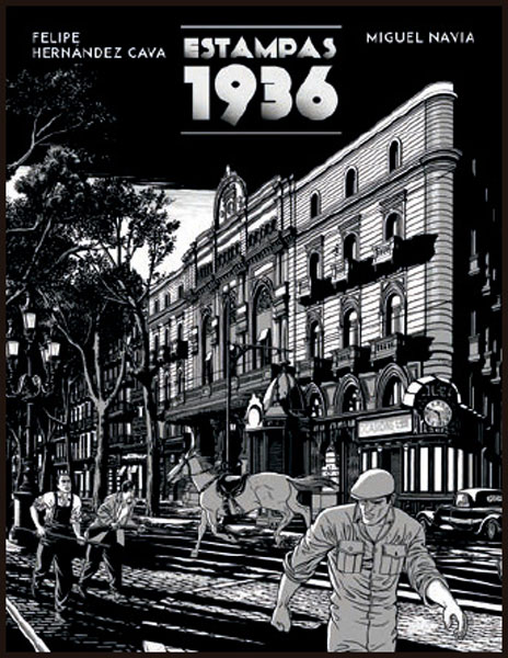Estamos ante un cómic sobre la Guerra Civil Española, sí, perno no hemos nada como Estampas 1936 antes de que Felipe Hernández Caba y Miguel Navia nos ofrecieran este magnífico fresco. Y no hay que profundizar demasiado en la obra para darse cuenta de la razón fundamental de ese primer análisis, y es que su mirada a este conflicto entre españoles no es política sino humana. Lo que les importa es la gente. Anónima y desconocida pero real hasta el estremecimiento continuo que provoca el recorrido visual por todo lo que sucede en la página. Cómic, decíamos, y sí, lo es, pero ligado al concepto de libro ilustrado que tampoco esquiva y al que no tiene miedo. Es decir, Estampas 1936 no es una única historia y no tiene un personaje central. Se trata de mirar al comienzo de la Guerra Civil, de ahí la presencia del año en el título del libro, para entender qué le pasaba al ciudadano de a pie en aquellos confusos y violentos días en que se inició un conflicto bélico que duró tres años. Es un mosaico atrevido y minucioso, en el que se ve sin problema un meticuloso trabajo de documentación, pero a la vez un deseo aún más intenso de que sea lo más humano lo que nos toque la fibra. Y lo hacen, sí, esto es noticia, sin que nos preguntemos realmente si la persona a la que vemos era de un bando, de otro o realmente le daba igual quien ganara con tal de sobrevivir.