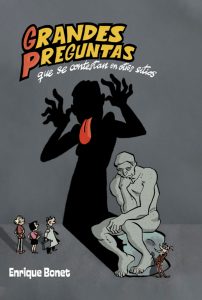 En Grandes preguntas que se contestan en otros sitios tenemos, en realidad, dos series diferentes, Manolo y Pepi por un lado y Apolonio Martirio, vendedor a domicilio por otro. Y dentro de la primera podríamos incluso hablar de dos series en una, la que da título al libro y la que se lo da a ese segmento. Así que si algo podemos valorar ya desde el principio es la enorme versatilidad de Enrique Bonet para hacernos reír desde diferentes aproximaciones narrativas. Siempre respeta el formato de sketch, porque es el que mejor le funciona a los personajes que idea. Por un lado tenemos una pareja en la que él, Manolo, hace todo lo posible para demostrarle su amor a Pepi, y a veces también lo imposible e incluso lo delirante, mientras que ella no hace más que reprocharle el poco amor que en realidad le profesa. Y luego tenemos a un psicólogo que trata de averiguar qué le pasa a Manolo… sin mucho éxito. En Apolonio Martirio, en cambio, seguimos los pasos de un comercial caradura y aprovechado, que no duda en utilizar mil y una estratagemas para convencer al potencial cliente de que afloje el dinero. ¿La ética? Eso mejor queda para otro tipo de personajes. Las risas, en cambio, están bastante bien aseguradas en las dos partes de este libro. No sabemos dónde se contestarán esas preguntas que plantea Bonet, pero su formulación es muy entretenida.