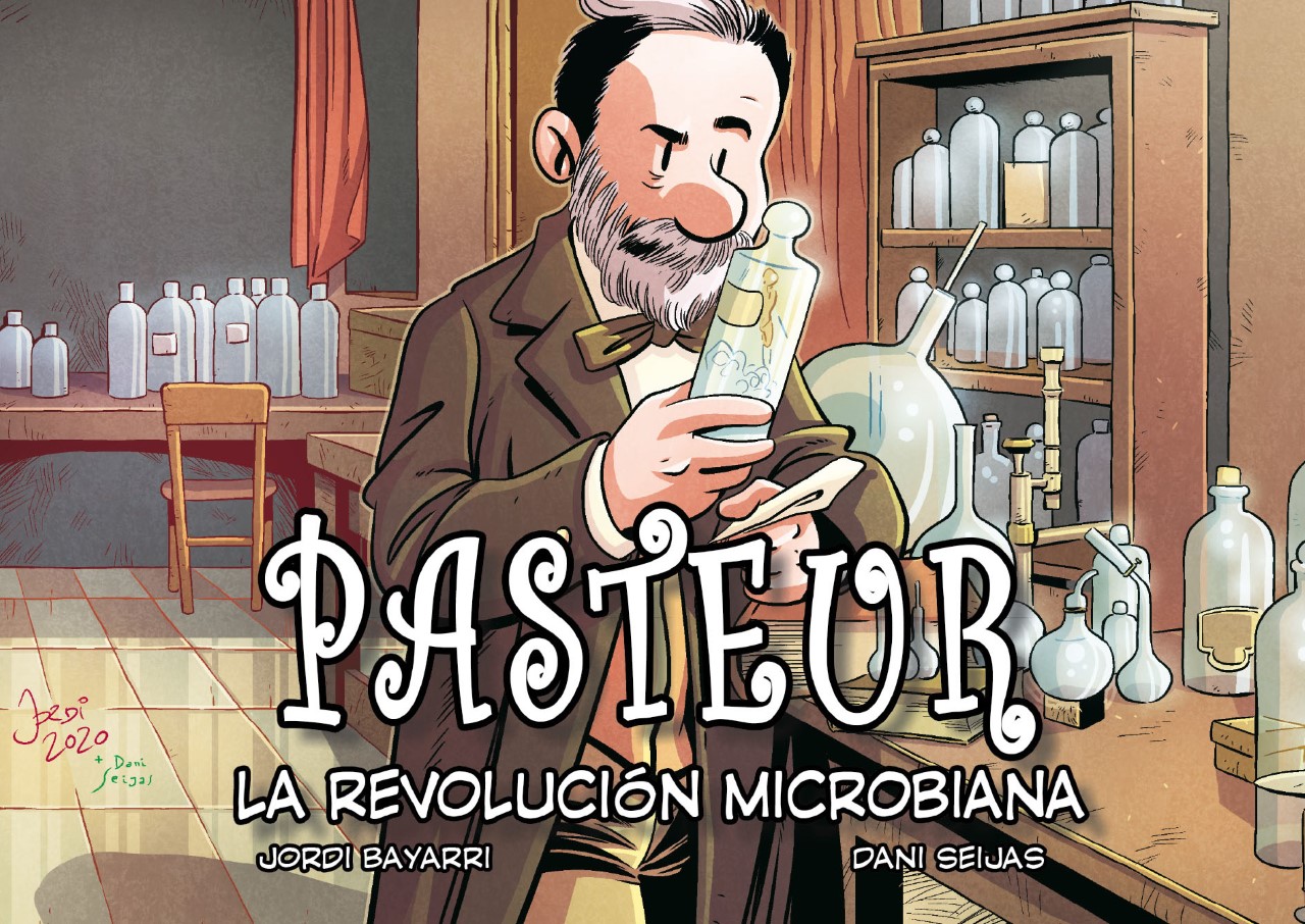 Pocos científicos vienen ahora más al caso que Louis Pasteur, cuyos trabajos condujeron al desarrollo de las primeras vacunas. Casualidad o no, es el protagonista de la nueva entrega de la gratificante Colección Científicos de Jordi Bayarri. Pasteur. La revolución microbiana tiene además un pequeño complemento en grapa para los mecenas de su campaña, Las vacunas. De Jenner a nuestros días, lo que refuerza la idea de que estamos ante un tebeo que ahora mismo es didáctico para los más pequeños pero también para todos aquellos que renieguen de la gran esperanza que tenemos ahora mismo en las manos para superar la pandemia. Dejemos en todo caso esa discusión para otros foros, y centrémonos en lo que nos interesa, que es el trabajo de Bayarri. Con Pasteur, el autor prolonga las siempre espléndidas sensaciones que deja su trabajo en el campo de las biografías científicas. Sencillez y claridad son sus señas de identidad, porque su objetivo es llamar la atención de los más pequeños para entretenerles, para que vean que la ciencia puede ser divertida si se cuenta bien y para que sea el germen de otras lecturas complementarias, más completas y profusas. Y eso es algo con lo que Bayarri está siempre muy comprometido. Sus tebeos están bien documentados, y Pasteur no se sale de esa norma que tan bien ha funcionado hasta ahora en esta modélica Colección Científicos.