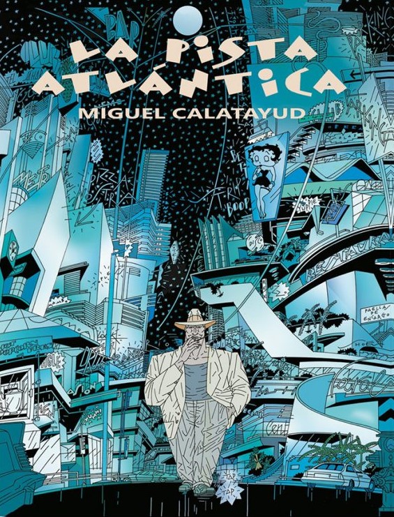 La Pista Atlántica sigue los pasos de Gili Lacosta, un investigador privado, en un entorno futurista de inequívoco ambiente retro, y lo primero que llama la atención en la construcción de su universo es el brutal clasicismo que tiene en su base. El arquetipo del detective privado, ese que ha funcionado durante todo el siglo XX con una precisión envidiable, le da ese tono a una historia que, en sí misma, quiere ser innovadora y vanguardista, que quiere explorar los terrenos de una ciencia ficción distinta, en la que hay por supuesto avances tecnológicos y sociales evidentes, pero en la que destaca la percepción de los personajes dentro de una sociedad que sabe jugar entre las semejanzas y las diferencias con respecto a la nuestra. O, mejor dicho, comparada con la que teníamos hace algunas décadas. Los misterios que plantea Calatayud son inteligentes, están muy bien llevados, sirven para que podamos disfrutar del arquetipo de su protagonista, del tono de buddy movie que también sabe emplear, de la particular manera en la que introduce a los personajes femeninos, más como figuras relevantes de la sociedad que como femme fatales o damiselas en apuros, que es lo más tradicional del género. No es nada fácil mostrar algo tan distinto y personal jugando con tantos elementos conocidos, y sin embargo La Pista Atlántica lo es.