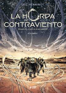 El trabajo de Henninot para dar forma visual a este mundo es sobresaliente, y lo es además en los dos aspectos de la obra. Es una ciencia ficción maravillosa, que sabe convertir el escenario natural en un personaje más, sus vistas, sí, pero sobre todo al viento, que se convierte en un enemigo formidable cuando en otros contextos podría haberse quedado en una amenaza invisible. Y sí, es también un retrato formidable de cada uno de los actores que aparece en pantalla. Henninot contrapone sus personalidades de una manera impresionante, las más viscerales y las más cabales, se aprecia todo el espectro emocional que necesita la historia, los momentos más tensos y los más íntimos. Hay escenas de enfrentamiento, de confianza, incluso de seducción, de culpa. Y todo ello bajo un manto de género brillante y muy definido, uno en el que todo el diseño que hace el autor luce de una manera increíble. La historia convence por lo que hemos visto y por lo que se puede anticipar que puede suceder en el futuro, el universo engancha por su presente y por sus posibilidades, pero el dibujo es sencillamente maravilloso y el gran argumento por el que resulta tremendamente apetecible la lectura de La horda de contraviento, un libro que entra muy fácilmente por los ojos y que da gusto ver una y otra vez para apreciar todos los detalles.