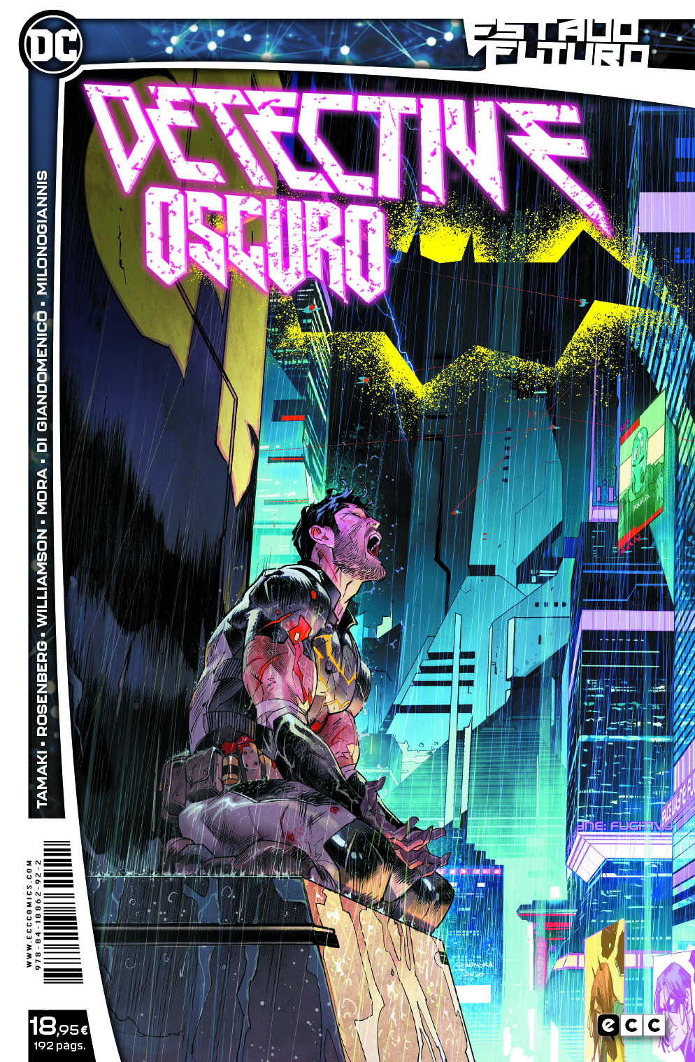 Tamaki juega bien con el tiempo, alternando presente y pasado para que entendamos lo que supone Estado futuro para Batman, y quizá lo más interesante es justo eso, que aunque parezca mentira el guion juega con una situación que resulta fresca, casi inédita para el personaje, aunque tenga resonancias de otras historias que navegan por territorios más o menos parecidos. Siempre ha sido más divertido ver a un Batman fuera de la ley que uno con apoyo de todo el mundo. Su lucha contra el poder opresor es más interesante así. La acción, además, es bastante notable, y Mora, que es un dibujante muy espectacular, le saca partido a todo, al obligado rediseño del propio Caballero Oscuro desde parámetros que seguramente recordarán a los que Greg Capullo ha hecho desde que tomó las riendas del personaje en los Nuevos 52 y al clímax de splash pages que nos ofrece. Tamaki le da todas las armas necesarias para que el aspecto de esta historia sea espléndido, jugando con la idiosincrasia de Gotham y de su vigilante, pero también con este tono a lo Blade Runner que se desprende del origen de este macrovento. No hay demasiado espacio para el aburrimiento en Detective Oscuro y sí muchas razones para disfrutar por este paseo por Estado futuro, uno que resulta esencial para entender el mundo que nos muestra.