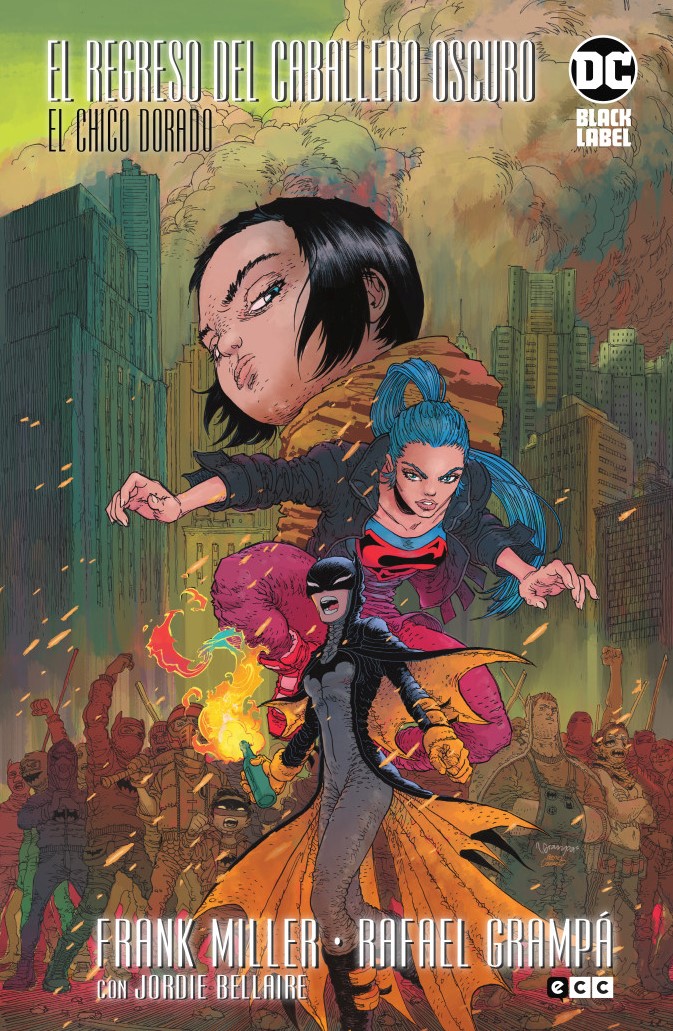 Para esta ocasión, como ya hizo en el grueso de La raza superior, el autor cede los lápices, en esta ocasión a Rafael Grampá, que sí aprovecha el estilo narrativo de Miller, el de la multiplicación de viñetas por páginas, el de los escorzos significativos en el movimiento de sus personajes, el de las provocaciones casi antinaturales como la posición de vuelo de ese chico dorado al que se refiere el escritor y trata de hacerlo suyo. Lo es, en parte, porque entiende muy bien el rediseño del traje de Carrie, el hallazgo visual más divertido de la obra, y porque mantiene esa aura que Lara tenía desde su presentación. El mundo que dibuja está a la altura, Darkseid suena amenazador, y el combate a todos los niveles es atractivo, tanto el que supone un despliegue de poder gigantesco como el más urbano y realista que protagonizan Carrie y sus acólitos, todo embellecido con el color de Jordi Bellaire, que culmina una obra que, en lo visual, resulta irreprochable. A Grampá parece quedársele algo escasa la extensión de El chico dorado para las ambiciones que demuestra, pero su trazo es, desde luego, una excusa maravillosa para regresar al mundo de Miller, uno que ya no es tanto de Batman como de ciencia ficción, uno en el que la figura que le daba sentido está ya prácticamente ausente. Es el Caballero Oscuro, sí, pero es también algo distinto.