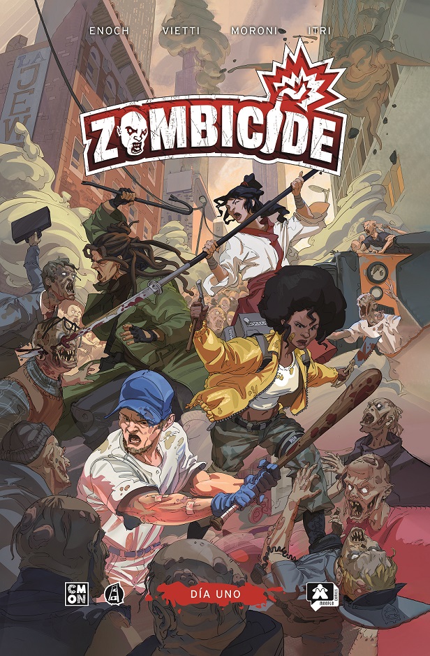 A estas alturas de la película, a nadie debería sorprenderle que se busque inspiración para historias en cualquier lugar, y mucho menos que esa zona sea la de los juegos de mesa, que en muchos casos tienen que crear sus propias bases narrativa para que tengan sentido. Zombicide. Día uno parte justo desde ahí, desde el tablero de un juego hasta las viñetas con unos personajes que van cobrando vida página a página, mientras se van abriendo camino entre muertos vivientes de lo más clásico. En realidad, Zombicide no entra en terrenos desconocidos ni tampoco necesita sentirse rompedor o innovador para ofrecer un muy buen espectáculo. Estamos en el origen, sin perder tiempo en contar los detalles de la plaga, porque al final lo que capta la atención de Luca Enoch y Stefano Vietti, con dibujo de Alessio Moroni y Marco Itri está en los personajes. Por eso hay tantas escenas retrospectivas, flashbacks que tienen que explicarnos lo que tiene que hacer cada uno de ellos para engancharse a este particular grupo que se va formando en busca del refugio que les pueda proteger del ataque de estos zombis. Y sí, en esa aparente concentración de pretensiones en lo visual es donde la diversión de esta aventura de Zombicide es la que se espera de una historia nacida de un juego de mesa y que puede desarrollarse también en cómic de una manera adecuada.