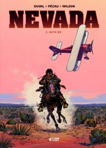 Nevada en general, por lo visto en estos dos primeros álbumes, es un reto constante en muchos sentidos, porque quiere aprovechar el sabor del cine clásico como escenario pero a la vez también en su narrativa, y de ahí que el trabajo de Wilson sea tan agradable de contemplar. No son pocas las escenas en las que podemos tener la sensación doble de estar viendo un rodaje o una misma película, cuando en realidad son las peripecias del propio Nevada Márquez. Y la virtud de Wilson es que vive entre sueños de celuloide y los de Western para dar forma a todo lo que le toca dibujar. Ruta 99, como ya sucedía con Estrella solitaria, es un tebeo de sensaciones, muy visual muy vinculado a los sentidos, y en el que Wilson sabe imprimir el carisma que necesitan todos y cada uno de sus personajes, también el escenario de fondo. Y como el trabajo de los autores es sobresaliente en todos los campos que tocan, de Nevada ya solo cabe esperar lo mejor, incluyendo guiños tremendamente inteligentes a la historia más turbia de Hollywood, que suelta con una naturalidad fascinante. ¿Y sabéis lo mejor? Que queda todavía mucho margen para seguir desarrollando la historia de Nevada, quedan muchas posibilidades, mucha sordidez en Hollywood y muchos escenarios americanos que coronen una serie que va por un camino espléndido.