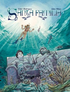 Y aunque la idea sea del escritor, cuando un ilustrador hace bien si trabajo hace que podamos pensar que él ha contribuido de una forma notable. Sucede con certeza en Santa familia porque no se puede imaginar a los personajes de Rodríguez sin el aspecto que les da Ribas. Qué trazo tan maravilloso tiene, que forma de dar vida a cada secuencia, a cada escenario, a todo un desarrollo vital, tres en realidad, uno por cada uno de los personajes que vemos, y cómo los entrelaza, sabiendo asimilar ese aire de fábula que tiene el tebeo pero sin renunciar a ese pedazo de realidad que le da su razón de ser. No dejemos de lado la forma en la que Rivas entiende la belleza, eso se ve en toda la extensión del cómic, por supuesto en el retrato de Nora y de la vida que en realidad está a punto de empezar para ella, pero tambien en el de sus padres. Casi podríamos decir que su portada nos coloca en un escenario onírico del que esperamos lo mejor y la respuesta a nuestras expectativas es sencillamente brillante. Da gusto que un tebeo escrito con tanta inteligencia encuentre un acabado visual tan hermoso. Y da gusto, por eso mismo, encontrar un cómic como Santa familia, que por alguna extraña razón nos invita a saltar sin miedo a lo que nos está contando como si era fuera la mejor manera de disfrutar de algo je se sale de la norma. Que se sale para bien, por si había alguna duda.