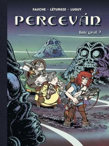 os tres álbumes del libro, como ya sucediera con el segundo de la serie, están coescritos por Léturgie y Fauche, y en estas aventuras cumplen con algo que resulta llamativo en Percevan desde el principio. No están describiendo el camino del héroe, no están forjando su personalidad ni dándole un lugar en su mundo. Simplemente están imaginando aventuras en las que él puede ayudar a resolver situaciones peliagudas en las que sí se necesita un héroe pero no para su propia realización personal o para la consecución de un objetivo propio. No quiere vengarse de un villano que le arruinó la vida de joven o derrocar al rey que le ha robado la corona. Percevan es, simplemente, un buen samaritano que se ve en condiciones de ayudar en un momento dado. Ese planteamiento ya hace que estemos ante una serie diferente, que en lo demás se desenvuelve con mucha soltura dentro del género. La fantasía, es cierto, engancha con cierta facilidad, pero hay que saber escribirla, y Fauche y Léturgie saben hacerlo de tal forma que cuentan mucho e insinúan también bastante, por lo que no necesitan ser demasiado explícitos para que entendamos los aspectos más adultos de las historias que imaginan, y que saben enmascaras para todos los públicos con una comedia cercana y agradable. ¿Difícil de encasillar por tanto? Desde luego. Y eso puede ser positivo, o no serlo.