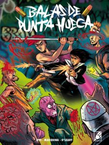 A veces explicar lo que vamos a encontrarnos dentro de un cómic es una misión imposible. O, al menos, una que no va a hacer justicia al salvaje delirio que propone. Eso pasa con Balas de punta hueca. Indiscutiblemente. Así que, en realidad, nos vamos a quedar con la metáfora del título. ¿Qué hacen las balas de punta hueca? Lo atraviesan todo, a lo bestia, son hacer prisioneros. Javier Marquina, que algo sabe de establecer las bases de los universos de ficción más variados, y UVE, que se mueve entre la salvajada más evidente y la comedia más loca, han decidido que esa iba a ser la máxima que rige el desarrollo de esta historia y la cumplen de una manera salvaje y sin miedo, derrochando litros de sangre y muertes tan cruentas que no vamos a poder evitar la carcajada que buscan los autores. Y todo ello mientras seguimos a dos mercenarias, lo que añade aunque no queramos un punto sexy, en una guerra de bandas en un mundo de fantasía oscura y, por supuesto, con alguna ex de por medio y muy divertidas sorpresas de por medio. ¿Hay o no hay por dónde coger está historia? Pues eso, balas de punta hueca. De esas que vuelan a nuestro alrededor para que disfrutemos de su baile imparable mientras degustamos el presente y rogamos por saber si va a haber más cuando acabemos las páginas de este libro.