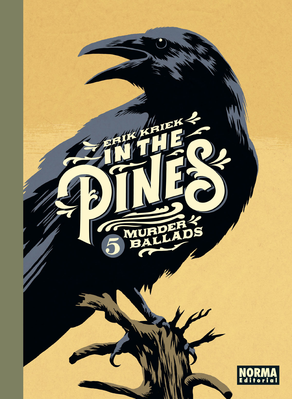 Solo hace falta una pequeña aclaración para entrar de lleno en lo que nos propone Eirk Kriek en In the Pines. 5 Murder Ballads, y es precisamente saber qué son las Murder Ballads. Hablamos de canciones tradicionales de la música norteamericana que hablan de crímenes, reales o no. Lo tradicional se junta en estas páginas con una narración moderna y brillante para dejarnos cinco relatos de los que quitan el aliento, en los que se trata de desgranar cinco asesinatos crueles y violentos desde una óptica que bebe más de la determinación que del misterio, aunque tampoco desdeñe esa baza, que están entroncados en el realismo pero que no descartan tampoco una base fantástica cuando merece la pena utilizarla. Las historias de crímenes convencen con facilidad, pero lo hacen mucho más cuando se cuentan con un envoltorio visual tan impactante como este. Se siente en sus páginas que estamos ante cuentos oscuros de tradición oral, que es parte de la gracia que tienen estas Murder Ballads, pero el esfuerzo de Kriek para plasmarlas en papel es igualmente loable. Antes del noir más arquetípico, ya existían estas historias, con aire de western o de aventuras en su presentación pero con un toque mucho más oscuro y siniestro coronado por un dibujo espléndido y cargado de detalles.