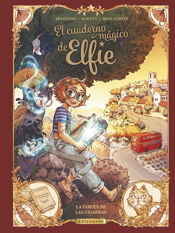 Lo mejor que se puede decir de un segundo álbum de una serie es que, como poco, está a la altura de lo que nos ofrece el primero. Eso es lo que sucede con El cuaderno mágico de Elfie, porque si La isla Casi (aquí, su reseña) era un tebeo muy entretenido y preciosista en su dibujo, que presentaba a unos personajes, tres hermanas, a los que era muy fácil seguir en su viaje a bordo de un autobús librería, La fábula de las cigarras se sostiene con las mismas bases. La historia de Christophe Arleston y Audrey Alwett, dibujada por Mini Ludvin casi como si lo estuviera haciendo el propio Arleston, sigue siendo encantadora, sigue desplegando una aventura divertida y emocional, y mantiene el amor por la lectura como motor básico de algunas de sus tramas. Junto con la magia, claro, no olvidemos ese cuaderno que asalta el título de la serie, del que cobra vida cualquier cosa que la peña Elfie cree en sus páginas. Y sigue siendo una historia de familia, donde la presencia de la madre de las tres chicas es intensa sin un papel protagonista, y donde lo que va sucediéndoles a las muchachas tiene resonancias en su propia vida, en su historia pasada y en la forja del carácter de tres adultas en ciernes a las que, aunque eso sea otra historia, también sería de lo más interesante seguir en sus correrías.