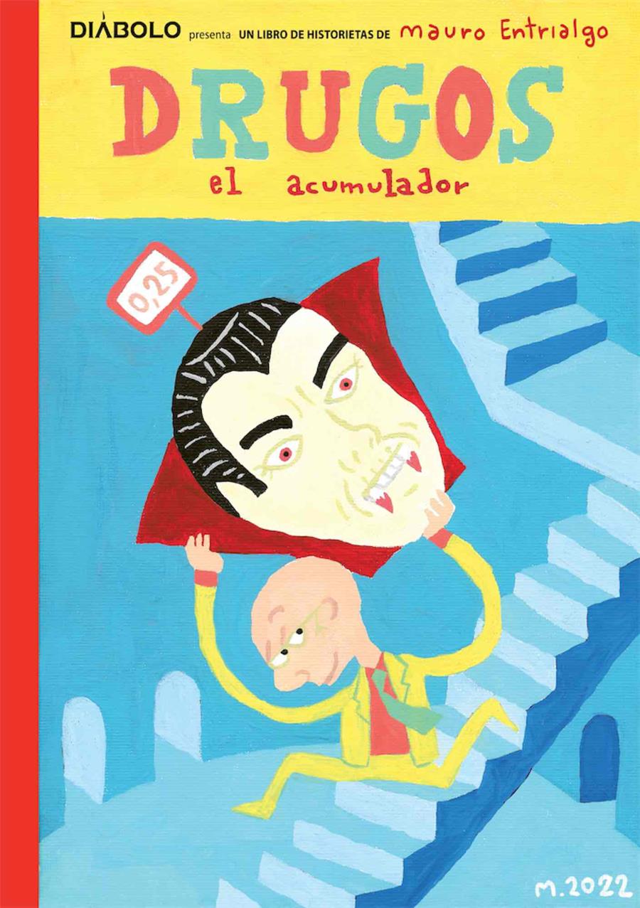 Puede que esa sensación venga también del inconfundible estilo de dibujo que tiene Entrialgo, con esas formas tan características, con esa manera de entender a sus personajes y, de una manera todavía más radical y evidente, la composición de página. No hay dos historietas iguales en este libro, y aunque por lo general suele apostar por una rejilla muy similar, con profundas líneas negras para dividir los dibujos, cuando vuelva toda su imaginación en esa parte del proceso consigue unas páginas muy atractivas para colocar a sus personajes. Y como estos generan empatía inmediata, como es muy fácil entender con ellos la comedia que sirve, Drugos. El acumulador tiene buena parte del camino recorrido antes incluso de que abramos el libro por primera vez. Y cuando lo cerramos, la satisfacción es plena. Puro Entrialgo, y eso es algo que con los años va teniendo un valor muy alto porque es un autor que lleva ya décadas siendo fiel a sí mismo y, de esa manera, retratando el mundo tal y como lo ve. Una mirada personal vale mucho, sobre todo cuando se sabe transmitir de una manera tan directa y eficaz como lo hace Entrialgo. Puede que Drugos. El acumulador no tuviera en un principio una vocación tan trascendente como otras divertidas locuras de su autor, pero el conjunto puede presumir de llegar tan lejos como otros títulos creados por él.