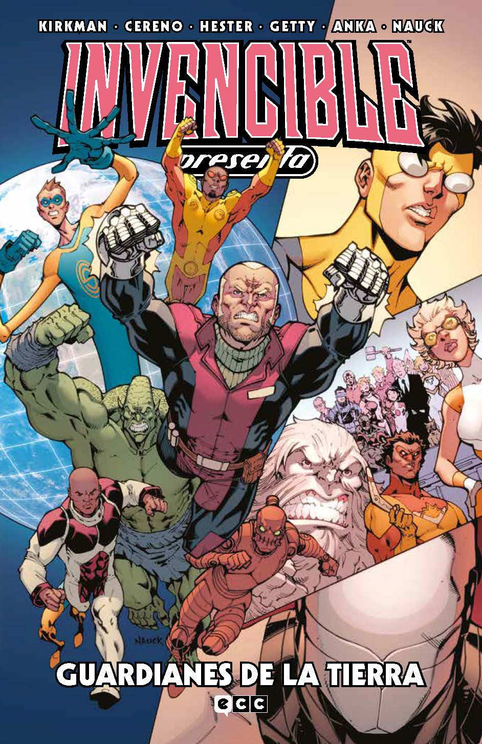 Hay cosas inevitables, y una de ellas es que en un universo iniciado por un superhéroe haya un grupo de personajes afines a los que se pueda unir en la lucha por la defensa de lo que sea, el mundo, el universo o los valores sociales. En Invencible (aquí, reseña de su primer volumen) eso es Guardianes de la Tierra. Y lo que tenemos en este volumen son las dos primeras miniseries de dicho grupo, en lo que lo más llamativo es que no es precisamente invencible quien se encarga de liderar el grupo o de conducirnos por sus aventuras. Mark, de hecho, ni aparece. Robert Kirkman es así y su universo de superhéroes, aunque sea deudor de todo lo que significa el género, tiene sus propias normas, por lo que tampoco es de extrañar que el punto de partida sea distinto. Y así, es Brit quien toma el mando, quien se ocupa de estar al frente de una serie de personajes más o menos inadaptados que protagonizan historias en las que, por supuesto, hay grandes enemigos planetarios a los que oponerse y combates superlativos que librar, esto no deja de ser un megaespectáculo con un amplio número de personajes, pero en la que se cuelan esos temas que hacen de Invencible una serie distinta. No es Invencible, claro, a pesar de que Kirman está envuelto en la primera de las dos miniseries de este libro, pero todo lo que leemos suena muy bien en todo caso.