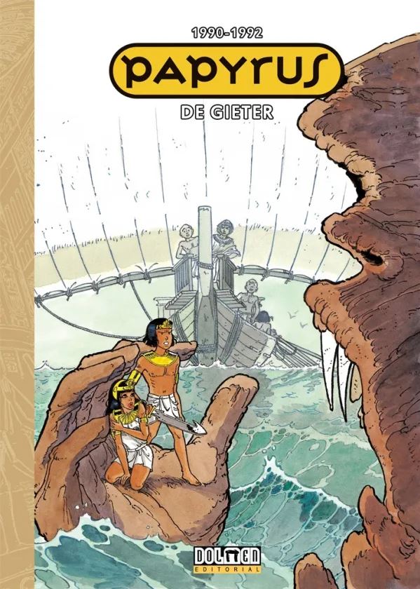 Si hay algo que Lucien de Gieter tuvo siempre claro en Papyrus (aquí, reseña de su primer volumen) es que la mitología debía de tener un papel muy potente en las aventuras que planteaba para su joven héroe. Y en este volumen, el que comprende los álbumes publicados entre 1990 y 1992, no solo ahonda en ese aspecto, sino que además sale de la mitología egipcia para saltar a la griega, que se acaban configurando como bases complementarias y muy eficaces de manera conjunta. Eso, y la persistente química entre Papyrus y Teti-Sheri, quien incluso se queda con el protagonismo absoluto b durante algunas páginas, hacen que la serie de De Gieter siga siendo tan entretenida como al principio. De hecho, puede que ese sea su principal argumento para convencer. A pesar de que en cada álbum hay un intento claro de personalizar cada relato, de alguna manera se da la paradoja de que hay un nivel bastante fijo entre unos y otros, lo que sirve para que haya una deliciosa atemporalidad que trasciende el marco histórico cerrado por el que apuesta. Son muchos elementos aparentemente contradictorios, pero De Gieter juega con ellos con mucha personalidad. Y en justicia hay que decir que la serie sigue siendo una atractiva aventura por un antiguo Egipto que tiene más interés en la mitología que en la Historia.