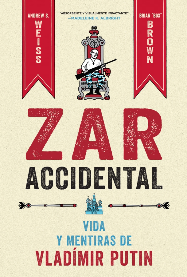 Pocas figuras hay en la actualidad política internacional que entrañan ahora mismo más interés que la de Vladímir Putin. El presidente ruso siempre ha tenido presencia en los medios, pero con un periodismo más centrado en la anécdota que en la trascendencia, al menos hasta que el actual ocupante del Kremlin decidió invadir Ucrania, su biografía está llena de episodios pintorescos y misterios que pocos se habían dedicado a desentrañar. Zar accidental. Vida y mentiras de Vladímir Putin es por eso una lectura más que interesante. Andrew S. Weiss exhibe un arsenal documental que desgrana en una descomunal bibliografía para que este repaso en torno a la figura y a la leyenda de Putin se tenga que tomar tan en serio como si no existieran los prejuicios contra el cómic como arte divulgadora. Lo que hace, con el dibujo de Brian Box Brown, es un estudio en profundidad sobre un tipo que ha llegado a lo más alto desde lo más bajo, pero alejándose de cualquier triunfalismo, el que desde luego le interesa al presidente que se retrata a lomos de un caballo o con el pecho descubierto, y demostrando que incluso quienes tienen un aparato de propagando casi omnipresente puede ser figuras con pies de barro y alma de tirano. Hay biografía, hay análisis, hay historia. Y hay una figura magnética, porque eso no se puede negar.