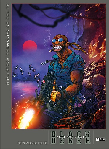 Es indudablemente extraño tener entre las manos el último cómic de un autor que dejó este precario mundo de las viñetas por voluntad propia, que sea además la segunda parte de una trilogía que nunca llegó a cerrar y que forme parte de una edición de lujo que nos recuerda todo lo que Fernando de Felipe, ese autor del que hablamos, era capaz de hacer en una página impresa. Yellow Moon es esa segunda entrega de Black Deker que nunca vio la esperada conclusión, y tanto tiempo después se lee de otra manera por esa misma razón. Nos asomamos a sus páginas con cierta pena, la que se deriva de una despedida para la que entonces no estaban preparados quienes leían con fervor a un autor que se estaba metiendo de lleno en una manera de narrar, la de álbumes, la de trilogías de esa extensión, que no era la que más y mejor había mostrado a lo largo de una carrera en la que las viejas revistas jugaron un papel muy destacado. Y aún así, cuando hay talento e imaginación las historias fluyen en cualquier formato, y eso pasa con Black Deker, aunque en el fondo se siga manteniendo en cierta manera el espíritu de revista por la forma en la que De Felipe va trazando su cronología, añadiendo ese cliffhanger tan pronto de la serie que estaba construyendo y que abandonó en ese punto.