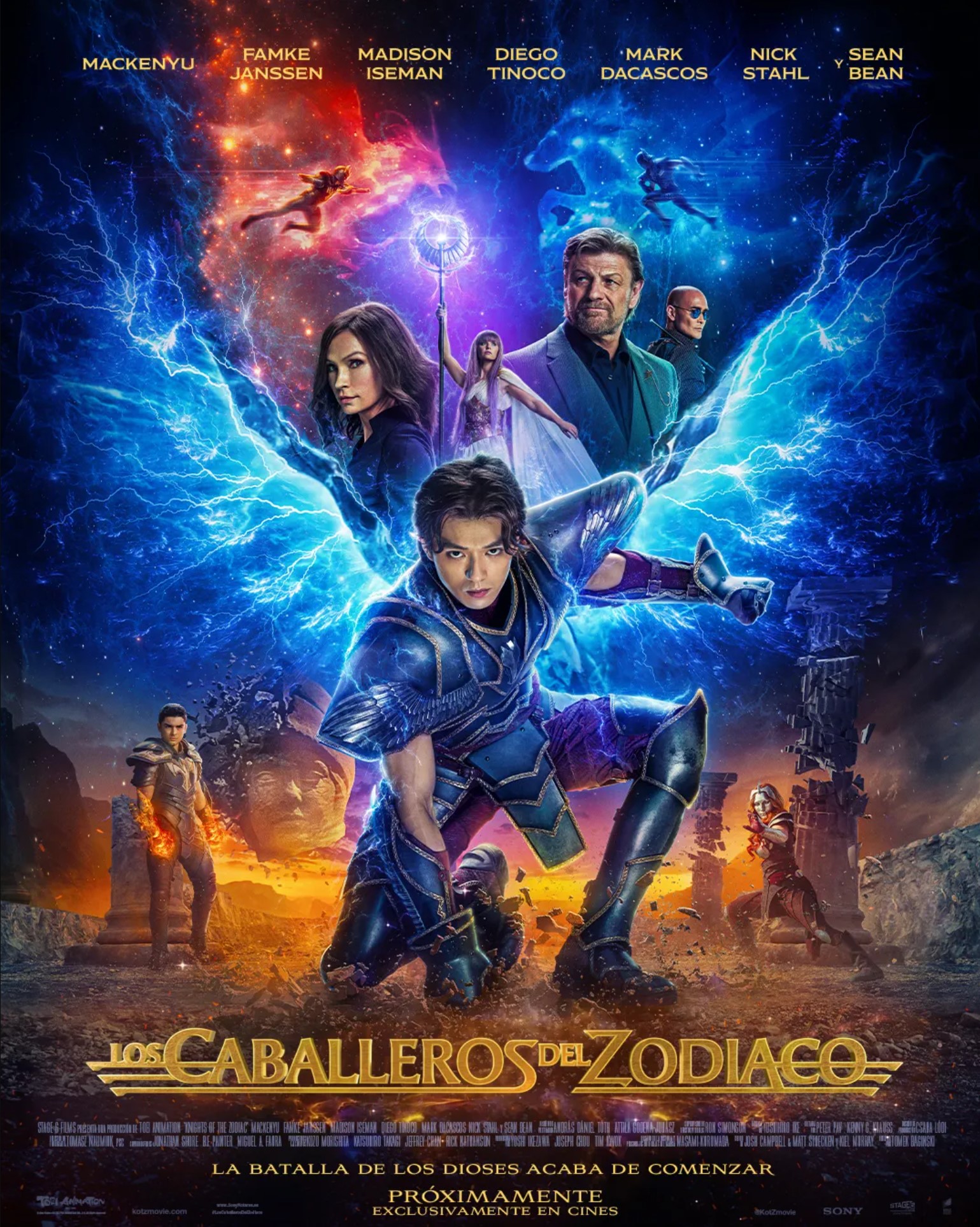 Pensemos en referentes como Dragon Ball, Mortal Kombat o Street Fighter y más o menos tendremos claro lo que se ha hecho con Los Caballeros del Zodiaco. Se cogen personajes, situaciones, una historia de fondo, sí, pero se falla por completo a la hora de dar a todo esto una forma notable o fresca. Es la historia de Seiya, de cómo consigue la armadura de Pegaso para proteger a la reencarnación de Atenea mientras busca a su hermana desaparecida, pero al margen de los detalles, la reestructuración que se hace en el guion es harto sencilla, casi simplista en muchos casos. Por eso es complicado que quieren adoren las encarnaciones más populares de Los Caballeros del Zodiaco sientan que esta es una revisión acertada de esas aventuras. Se siguen modelos obvios, el de contar con protagonistas jóvenes más o menos desconocidos y pesos más pesados entre los secundarios, que se limitan a pasear por la pantalla sin más intención que cerrar un trabajo, y eso pasa con Sean Bean y Famke Janssen. También en los comportamientos, choques iniciales que se convierten en una confianza ciega, malos que no son tan malos, misterios de resolución obvia pero que por alguna razón se quieren mantener… Ninguna sorpresa, nada que llame la atención, poca cosa que rascar si queremos algo nuevo.
