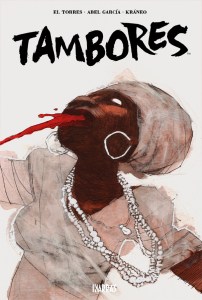 El éxito de un tebeo, o mejor dicho su repercusión, a veces depende del momento en el que se lanza. Viene esto por Tambores, un más que apreciable tebeo de El Torres, y nos quedamos cortos, que tuvo la mala suerte de llegar después de las dos historias que establecieron al autor como uno de los escritores de terror más destacables del panorama nacional, El velo (aquí, su reseña) y El bosque de los suicidas (aquí, su reseña). Con semejante listón, la percepción que se puede tener de una nueva historia de género puede verse alterada. Esto es así, es un fenómeno bastante inevitable, pero el paso del tiempo aclara mucho. Y ahora, más de una década después de la publicación original, Tambores resurge con fuerza para dejarnos claro que este tebeo es tan potente como los anteriores. Para gustos los colores, por supuesto, y cada lector tendrá su favorita, pero lo que sí está claro es que en su momento esta historia ya demostró la enorme versatilidad de El Torres en el género. La historia, además, salió adelante a pesar del cambio de dibujante, con Kráneo haciendo el primer número y Abel García ocupándose del resto, y los dos responden de manera, entendiendo claramente el mundo de vudú y zombis que describe El Torres con una viveza aterradora, desde lo más pequeño de este universo hasta lo más grande, que es lo que se ve al final.