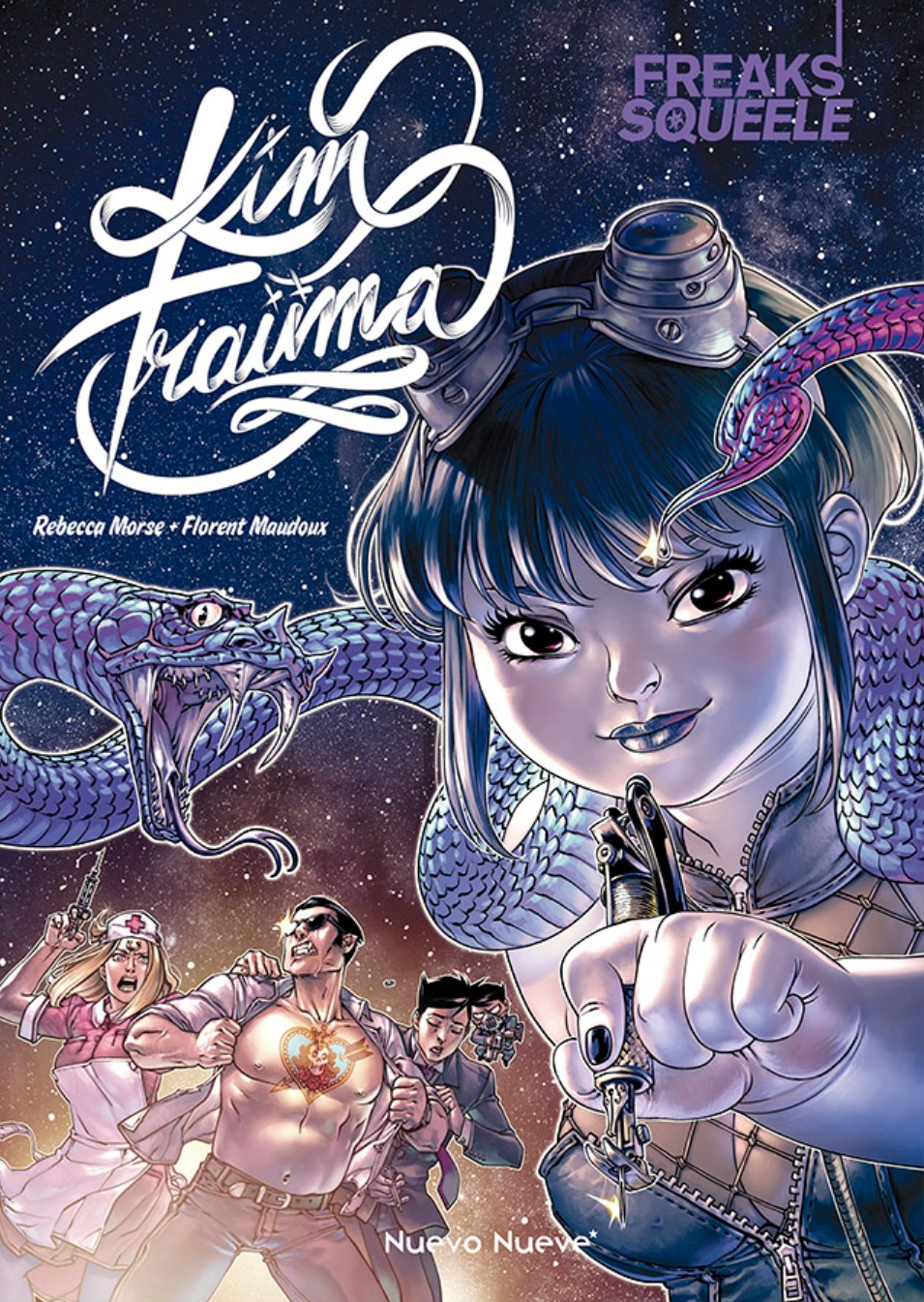 Si nos queda alguna duda por la historia, lo cierto es que el dibujo las disipa con facilidad, ya desde las guardas que coronan el volumen y que demuestran lo salvajemente bonito que puede ser este universo cuando se lleva hasta el extremo. Maudoux y Morse nos llevan de nuevo a las sensaciones que dejaba Freaks’ Squeele, a ese gusto por la mezcla de influencias muy diversas y en el que se cuelan homenajes de todo, incluso a la propia serie central pero también a otras franquicias. Eso mismo hace que el dibujo pueda cambiar de tono con facilidad, aceptando la comedia más evidente y la belleza más rotunda, que es la que siempre ha sabido aplicar Maudoux cuando ha dibujado cuerpos desnudos, ya sean de mujer o de hombre. Mezcla, mucha mezcla, esa es la recete que propone siempre Freaks’ y a la que Kim Traüma no es ajeno en ningún momento. Por eso resulta tan fácil entrar en este mundo, porque sus reglas ya nos son conocidas y porque la novedad en cuanto a los protagonistas se entiende fácilmente como una nueva oportunidad. No es seguramente la historia por la que merezca la pena entrar en este universo creado por Maudoux pero desde luego en un notable complemento para todo aquel que ya lo conozca. ¿Ganas de más? Desde luego. Más Kim Traüma, pero más Freaks’ Squeele sobre todo.