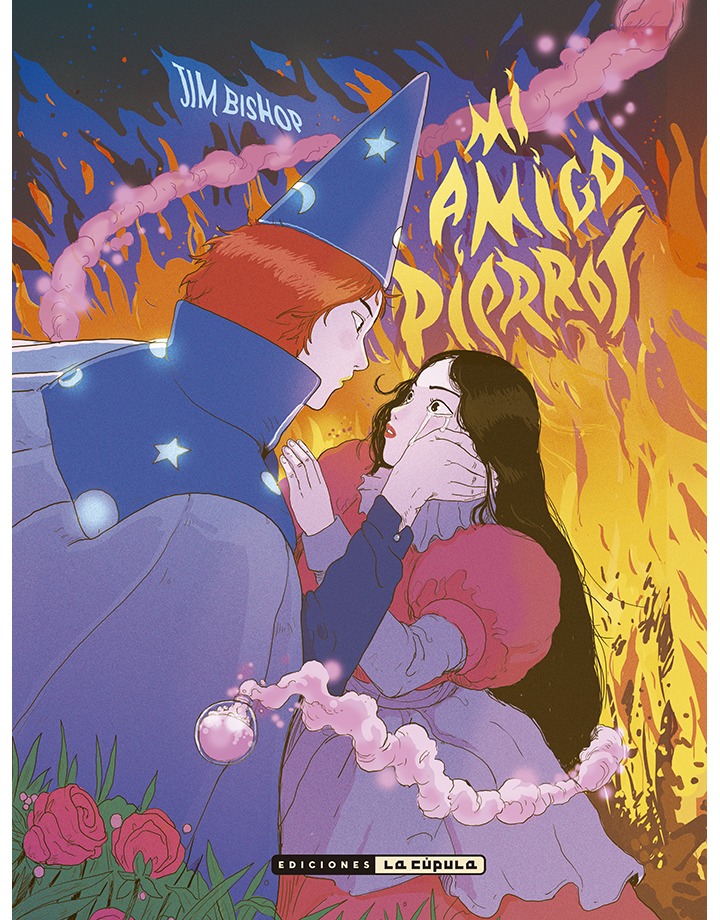 Después de haber leído Una carta para Yodo (aquí, su reseña) y ahora Mi amigo Pierrot, no se puede dudar de la enorme ambición con la que Jim Bishop encara sus historias. Puede que cueste un poco encontrar una moraleja final, pero en el fondo lo que parece buscar el autor es siempre un universo de fantasía en el que tenga acomodo lo más cambiante de la vida real. Y en Mi amigo Pierrot pasa. Al principio parece que estamos en un cuento de hadas, pero eso que parece tan bonito, tan mágico y especial, pronto se va convirtiendo en algo distinto. Y de repente nos damos cuenta de que hay en la obra una profundidad distinta, mucho más dramática, menos ingenua, incluso dejándonos ver el lado más dañino del comportamiento humano. Bishop nos habla de sueños, de ilusiones, de amores… pero también de cómo todo eso se puede romper en mil pedazos, de relaciones tóxicas y de sueños rotos, de la mentira, la decepción, la desilusión o el desánimo. No pierde del todo la fantasía que necesita el cuento de hadas, pero no hay moraleja final, como si el autor quisiera esquivar esa cuestión para que sea el propio lector el que tome esas decisiones libremente y piense qué tipo de historia acaba de leer. Elementos deja de sobra, desde luego, para que esa reflexión tenga lugar. Y visualmente es tanto o más fascinante que en su historia.