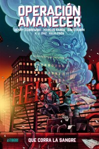 Una historia nueva de vampiros tiene pros y contras. Los pros pasan por el hecho de que estamos ante, probablemente, la figura más querida del género de terror, aquella sobre la que pivotan un número incontable de historias de todo pelaje y condición. Los contras… exactamente los mismos, porque habiendo leído y visto ya a tantos vampiros pululando por la narrativa popular es muy difícil encontrar ángulos nuevos o frescos que nos llamen la atención. El de Operación amanecer, del que nos llega el primero de sus dos volúmenes, Que corra la sangre, puede presumir de haberlo logrado en una medida considerable. No es algo que no hayamos visto, no completamente, pero sí puede presumir de cierta originalidad. El guion de Henry Zebrowski y Marcus Park saben moverse por su escenario moderno, actual y dinámico. Y David Rubín le da ese toque distintivo que sabe aunar los distintos tonos que se concentran en Operación amanecer, incluyendo la comedia, que también está presente aunque no deje de ser un relato de terror en su base como también un thriller que casi podríamos emparentarlos con los de espías. La clave está en lo vampírico, es su auténtico motor a todos los niveles, también en el visual y Rubín eso lo disfruta mucho, pero tiene recovecos que, a la espera de un final todavía por llegar que corone bien la propuesta, amplían sus horizontes.