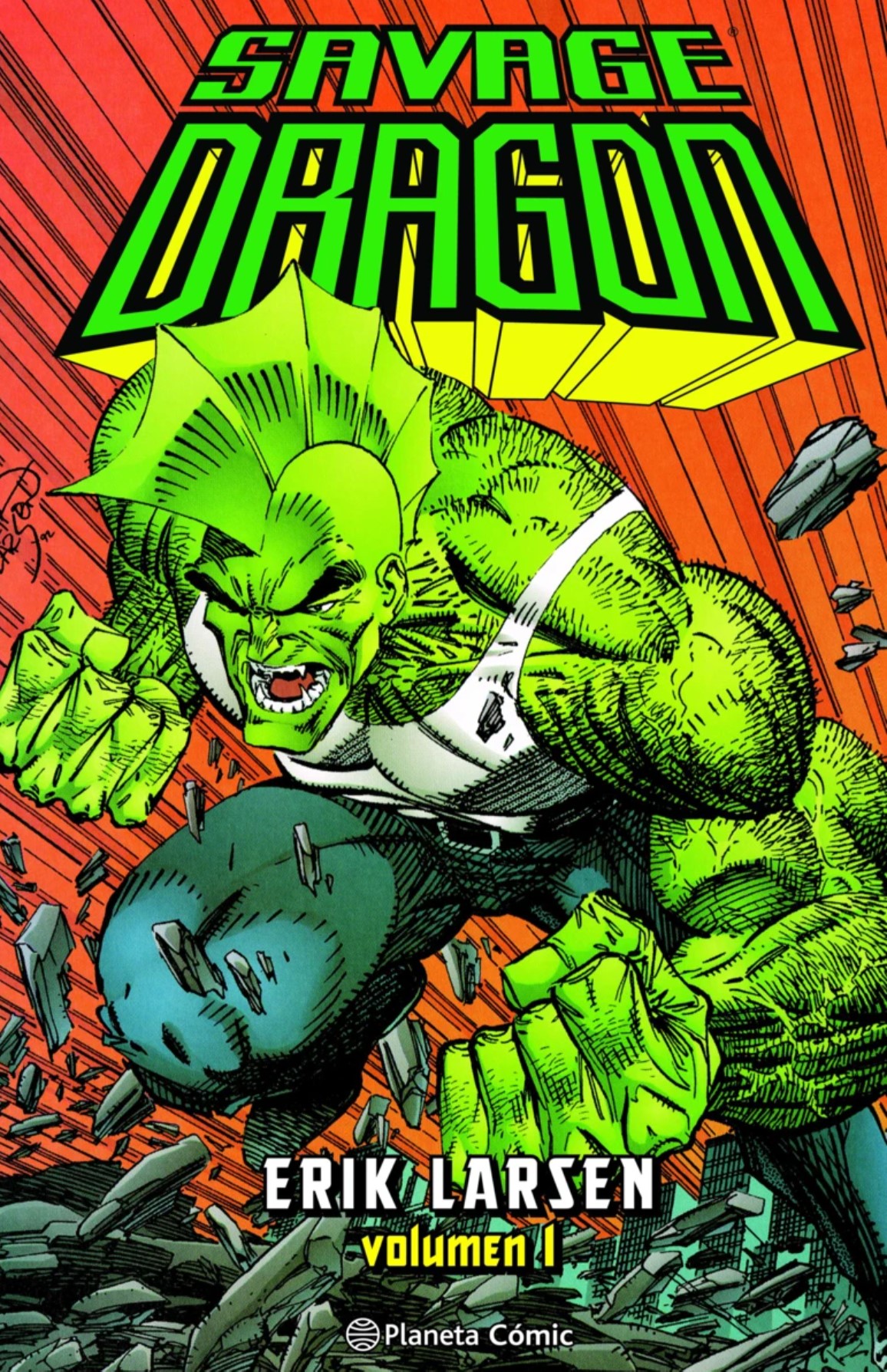 Erik Larsen, él mismo lo explica al final del libro que tenemos entre las manos, fue uno de los fundadores de Image, parte de la revolución de los dibujantes que, aprovechando su posición de poder e influencia, cambiaron para siempre la industria del cómic americano en la última década del siglo pasado. Y eso mismo es lo que hace que Savage Dragon sea una obra que hay que leer en ese contexto, el de los desdeñados años 90. Savage Dragon es una muestra evidente de todo lo que marcó ese período en este mercado. De todo. Larsen creo a un personaje de pasado misterioso y no volvió a ese tema hasta un par de cientos de páginas después de arrancar su odisea, porque lo importante era un ritmo tan endiablado que rompiera todas las normas del tiempo. En Savage Dragon se van concatenando acontecimientos sin explicar cuánto tiempo ha pasado, a veces son instantes, a veces horas, a veces incluso semanas. No eso lo importante, y aunque es una muestra de las limitaciones de Larsen como escritor, al igual que sus trillados diálogos, al final hemos venido a ver a un tipo de casi dos metros de altura, de piel verde, con una aleta en la cabeza y fuerza e invulnerabilidad sobrehumanas pegarse con todo bicho viviente en un mundo de heroínas de medidas imposibles y escueto vestuario, estrafalarios villanos y amenazas continuas.