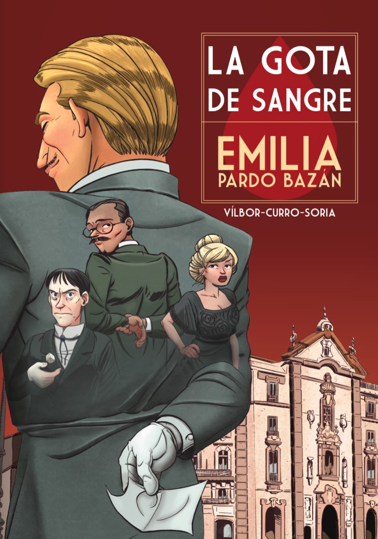De eso también se encarga Curro, que se desenvuelve en el Madrid de los años 20 del siglo pasado con una soltura espléndida, con un retrato de los personajes muy conseguido, haciendo que apenas nos demos cuenta mirando en su biografía que este es apenas su segundo cómic publicado tras Baixo o pantano. Con un notable trabajo de color a cargo de Alicia Soria, que tiene una agradable sensación de teatro clásico, visualmente la obra entra muy fácil por los ojos del lector. Sin necesidad de romper las viñetas, jugando efectivamente así a que nos sintamos dentro de una obra literaria con mucha trayectoria a sus espaldas, sabe dar mucho carisma a los personajes sin hacerlos del todo obvios, plantea muy bien las escenas que tienen que colaborar en el misterio y da mucha vida a los diálogos para que no sea una simple secuencia de cabezas parlantes, incluso aunque en algunas páginas haya una cantidad de texto elevada que deja poco espacio a la narración gráfica. La gota de sangre entretiene muchísimo, su misterio implica, la adaptación funciona a las mil maravillas y es uno de esos tebeos que nos recuerda que la magia del cómic puede llevar hasta públicos actuales historias de todo tipo. Elegir a Pardo Bazán para este propósito es una reivindicación múltiple, pero la obra se sostiene con enorme personalidad incluso sin esos reclamos.