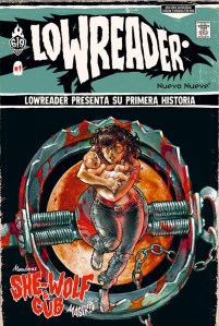Fuimos muchos los que alucinamos con lo que Florent Maudoux era capaz de hacer en Freaks’ Squeele. Ya entonces, demostraba un exquisito gusto por la fantasía, por la fusión entre un estilo francobelga y las notables influencias del manga, y el paso del tiempo no ha hecho más que afianzar a un narrador más que solvente dentro de su campo de preferencia. LowReader va por esa misma línea, en realidad por la que marcó Doggy Bags (aquí, reseña de su primer número), la de ir acumulando relatos cortos de esos que gustarían a Quentin Tarantino o Robert Rodríguez por el uso de la violencia, por sus toques de fantasía alocada, por dar protagonismo a mujeres de armas tomar. She-Wolf & Cub recupera al personaje de Masiko, al que ya conocíamos quienes hemos seguido a Maudoux, y tiene una fortísima influencia de El lobo solitario y su cachorro. Todo parecen obviedades, sí, pero a la vez conforman las bases de uno de esos entretenimientos que rozan el placer culpable, pero que en realidad responden a una necesidad de adrenalina por parte del lector que suministra Maudoux casi siempre con una eficacia demoledora. ¿Importa mucho conocer al personaje o al propio Maudoux para leer esta historia corta? La verdad es que no. Para quienes tengan esas ideas, miel sobre hojuelas, pero esto funciona de igual manera como puerta de entrada.