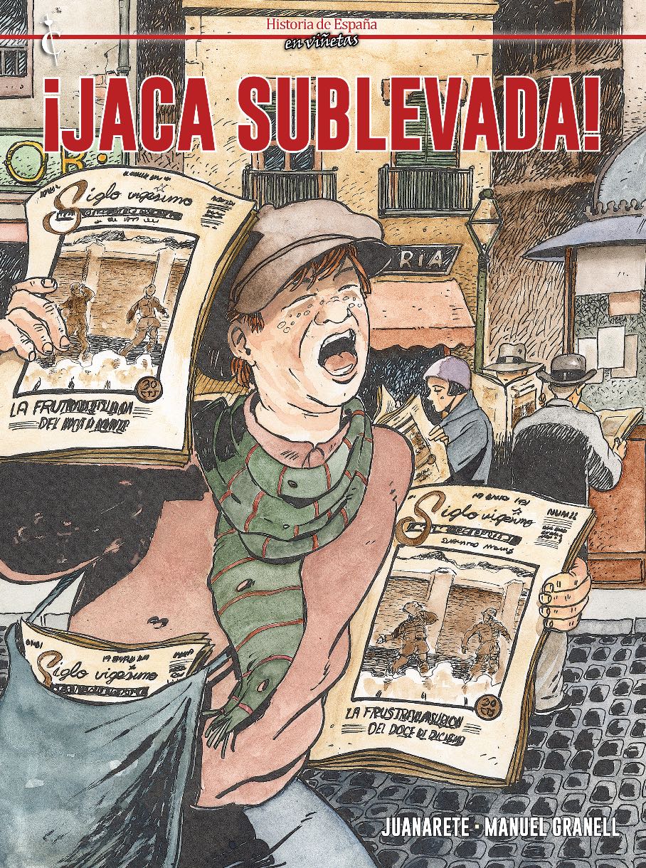 Sobra decir a estas alturas que un cómic histórico tiene un buen trabajo documental para dar forma a su relato. Juanarete, además, tiene una notable experiencia en este terreno, lo que hace que se pueda entrar en ¡Jaca sublevada! con la absoluta tranquilidad de que vamos a asistir a una sobresaliente reconstrucción histórica. Ese, obvio, es el primer requisito que tiene que cumplir un tebeo de este corte, pero, afortunadamente, no queda ahí, y eso permite que podamos pensar en que este cómic tiene un público objetivo más amplio del que conforman los intereses locales o documentales. Lo curioso es que desde su ámbito de originalidad consigue completar sus objetivos de una manera más plena, precisamente porque sabe abrazar la comunicación como parte esencial del desarrollo de su idea. Damos vueltas para no desvelar demasiados detalles, pero cuando se lee ¡Jaca sublevada! la satisfacción es notable porque el escritor no se detiene en la narración cronológica de un acontecimiento concreto, sino que desarrolla una estructura muy llamativa que, narrativamente, es todo un hallazgo, poco habitual en el mundo del cómic. Sin necesidad de encontrar algo rompedor o distintivo, sí es un soplo de aire fresco para el cómic histórico español, que vive un periodo de auge y que con ideas así es capaz de seguir reinventándose.