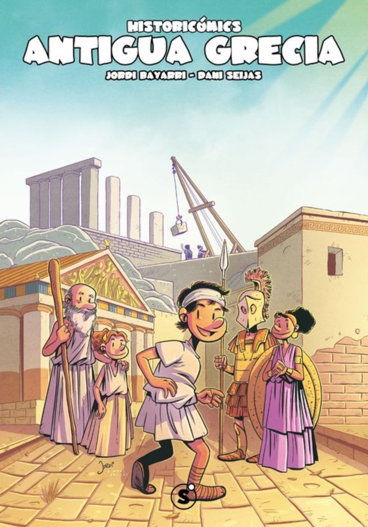 Es curioso cómo han cambiado los tiempos. Todos los que hoy ya podemos peinar alguna cana, todos los que hace tiempo que hemos dejado de encajar en los grupos de edad que reciben ayudas por su juventud, hemos crecido con colecciones de cómics. Todos teníamos cuatro, diez o doce volúmenes de una colección ilustrada, y seguramente ninguno recordaremos esa autoría, sencillamente porque ni los propios libros se molestaban en destacarla, da igual que fueran clásicos de la literatura, aventuras de la historia o incluso adaptaciones de películas o series. Hoy, afortunadamente, la autoría importa. Desde hace ya mucho tiempo, y eso es algo que nos ayuda a identificar autores y líneas. Con Jordi Bayarri no hay mucho problema, porque nunca ha querido seguir a nadie con su estilo, al contrario, ha querido que fuera suyo y es una marca clara para reconocer sus tebeos. En general todos, pero sobre todo los educativos. Por eso, cuando nos adentramos en un nuevo volumen de Historicómics, en este caso Antigua Grecia, lo hacemos con la tranquilidad de saber dónde nos estamos metiendo, con un autor que sabemos lo que nos puede ofrecer, a nosotros y a nuestros hijos,