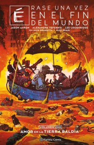 Jason Aaron no es un escritor que deje indiferente y Érase una vez en el fin del mundo arranca en sui primer volumen con esa sensación de que vamos a leer algo, como poco, adictivo. Y decimos como poco porque la impresión puede crecer en función de lo que estemos dispuestos a aceptar. La historia nos lleva a un mundo postapocalíptico. Por ahí, cero sorpresas, porque parece que un escritor no es nada en la vida si no plantea un escenario así alguna vez en la vida. Es la historia de dos muchachos casi antagónicos, una chica preparada para sobrevivir a todo y un chico que no sabe nada de lo que pasa en el mundo exterior, oculto en la burbuja de un refugio inmaculado. No, tampoco hay por ahí nada realmente nuevo. Y la historia se complica poco a poco, descubriendo cosas del pasado y abriendo puertas al futuro. Y ahí es donde sí se aprecia una frescura. Primero, porque cambia el dibujante. Es Alexander Tefenkgi quien lleva la voz cantante, pero Nick Dragotta el que se ocupa de dibujar las páginas que nos llevan unos años más al futuro. En ese misterio, en lo que se tiene que pensar en lo que ha pasado para llegar a ese escenario es donde seguramente más tiene que ofrecer Érase una vez en el fin del mundo, en este primer volumen y en los dos restantes de la serie. Eso marca que este primer libro enganche.