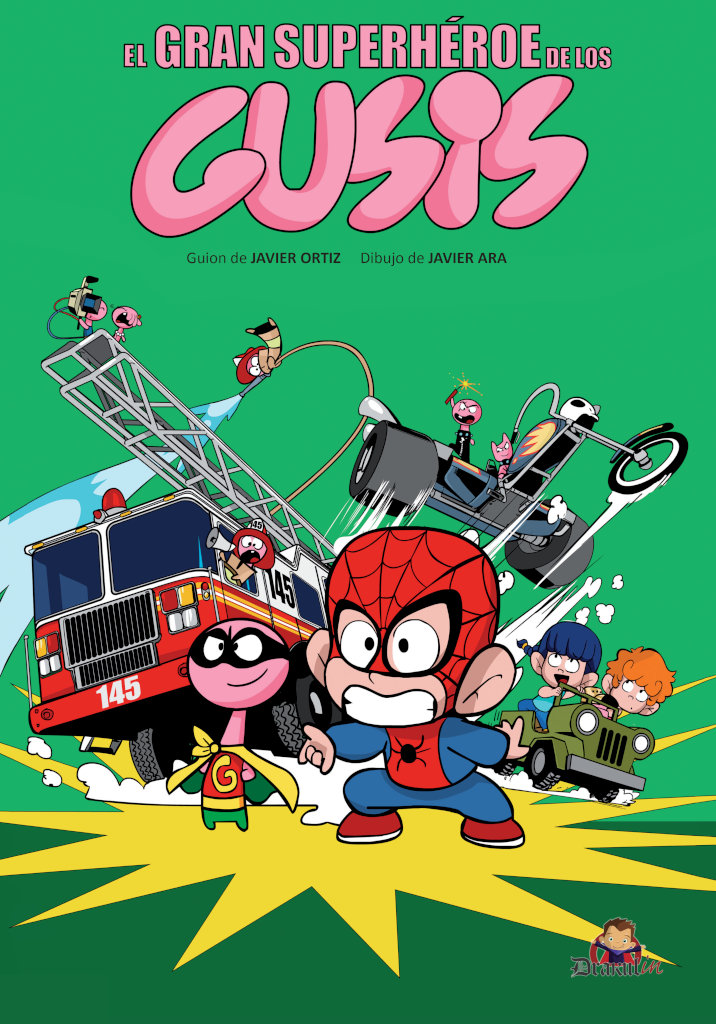 Uno podría pensar que un chiste tan insistente podría agotarse, pero lo cierto es que no lo hace. Y si no sucede es porque la historia es divertida, es dinámica, tiene el ritmo que necesitan lectores de corta edad y la imaginación que tiene que estimularles. Ortiz ha sabido construir un mundo muy completo con pocas normas, lo que hace que sea muy accesible, y lo está desarrollando con mucho sentido del humor y con un sentido de la aventura que necesita cualquier tebeo protagonizado por niños y destinado a ellos. En El gran superhéroe de los Gusis, la base de una de las historias, la que podríamos considerar como central, uno de ellos se convierte en su héroe en un mundo de fantasía. No es una parodia de Spider-Man, sino que este Spimerman es, sencillamente, una traslación realista de lo que un chiquillo hace con la mitología que le entra en la cabeza, convertirla en una realidad muy personal. Qué fácil es entrar en esa dinámica y qué bien encaja en el desarrollo del mundo de los Gusis que seguimos viendo, ahora, por ejemplo, adentrándonos en sus medios de comunicación a través del más comprensible para sus lectores ideales, la televisión. Tiene mérito que el álbum se convierte en una concatenación de ideas muy locas, una detrás de otra, y que a su vez eso tenga un hilo conductor fácil de seguir.