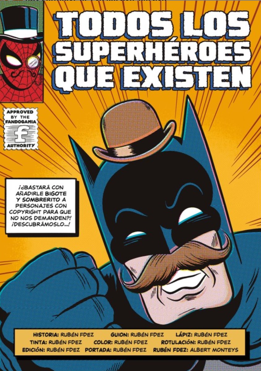 Saben a poco, claro, porque cuando estamos ya metidos en materia nos tenemos que despedir, pero cumplen sobradamente con los objetivos de Rubén Fdez, que no son otros que hacernos sentir partícipes de un género muy popular, visto con una mirada distinta y divertida. Versátil también, porque hay un homenaje directo a la manera más clásica de dibujar superhéroes, sin un referente claro entre los grandes del género, pero con un indudable sabor nostálgico al que solo le falta aquel maravilloso color a puntitos con el que crecieron muchas generaciones de lectores y que sí están en la cubierta. Y luego, en el grueso del tebeo, es cuando despliega su estilo habitual, el que hemos visto ya en tebeos como El Rubius no sale en este libro (aquí, su reseña) o Preguntas frecuentes sobre el siglo XXI (aquí, su reseña). Por si hace falta advertirlo, Todos los superhéroes que existen no es un ensayo sobre el género, una sesuda enciclopedia sobre sus personajes o una exhaustiva cronología que aborde su historia, sino un tebeo en el que ponemos bigote y bombín a Batman o creamos un desplegable con las flaquezas y miserias de todos los héroes del universo cinematográfico de Marvel, en el que nos reímos de la psicología de Watchmen o en el que hablamos del Capitán Caprabo como si fuera un superhéroe más. Recordad, reírse, incluso de aquello que nos gusta, es sano.
