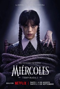 Esto es una forma amable de hablar de una cierta irregularidad en el formato, pero teniendo en cuenta que su fantasía es tan peculiar se acaba aceptando sin problema, seguramente también por la forma en la que Netflix nos sirve la serie, en dos tandas de cuatro episodios cada una, lo que permite un visionado cómodo. Hay momentos en los que da la sensación de que se va a repetir demasiado la estructura de la primera temporada y decisiones, como el cliffhanger del episodio cuarto que no van más allá de un efectismo innecesario. Es una segunda temporada más siniestra que la primera, pero también más ambiciosa. Quizá por ello es un poco menos redonda, pero se aprecia el esfuerzo y los nuevos personajes, junto con los que cobran más peso, redondean bien sus arcos. Miércoles, a pesar de estar por supuesto en el centro de todo, pesa menos de lo que parece, y eso es quizá el gran debe de la segunda temporada, ya que casi todas las resoluciones de trama tienen a la hija de los Addams más como espectadora que como ejecutora. Es, quizá, el precio que Burton estaba dispuesto a pagar para que Miércoles se convirtiera en un retrato de los Addams mucho más ambicioso de lo que fue en la primera temporada. Se paga y se disfruta, aunque parece evidente que será la tercera temporada la que confirme si ese viraje merece la pena o no.