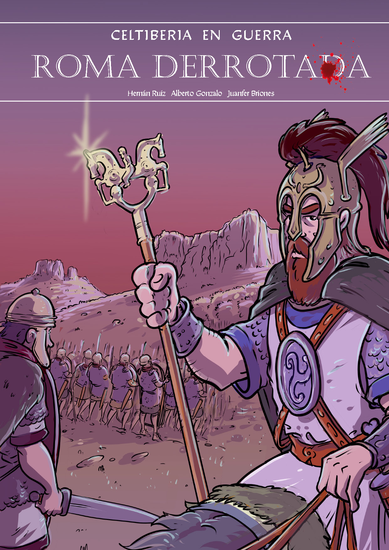Hay pequeñas conquistas que, sutilmente, nos van confirmando que este pequeño y precario sector del cómic en el que nos movemos en España va dando pasos que, en realidad, son de gigante. Eso, o la osadía de algunas pequeñas editoriales es algo que tendríamos que valorar más. Roma derrotada, escrita por Hernán Ruiz y Alberto Gómez y dibujada por Juanfer Briones, se anuncia como el primer álbum de una trilogía englobada bajo el título de Celtiberia en guerra y eso es algo magnífico. Luego el trabajo de los autores justifica con creces esa valentía, porque la historia merece la pena desde todos los puntos de vista. Es, indudablemente, un trabajo notable desde lo histórico y lo documentado, hay un esfuerzo notable en que haya una precisión en ese sentido y son muchos los aspectos de la vida de la época que se van relatando con una sencillez encomiable. Suele ser pecado de este tipo de tebeos que esa ansia didáctica se pueda llevar por delante la historia, siquiera en algunos aspectos, pero en Roma derrotada no sucede, el peligro se esquiva con habilidad y este retrato de la guerra celtibérica, la primera de las tres grandes guerras que se contarán en esta serie, es ameno y certero. Podemos echar en falta un guía más claro en este viaje, pero eso es algo que ya entra más bien en gustos, no en el debe de los autores.