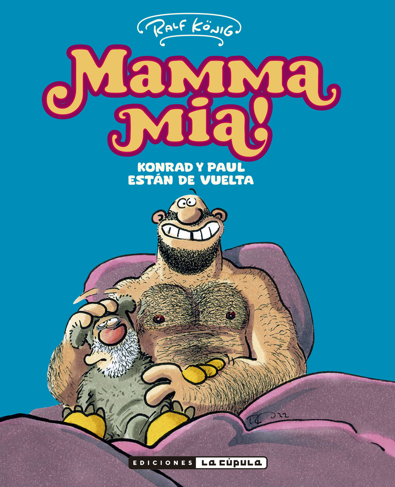 Konrad y Paul están de vuelta. Lo dice en la portada de Mamma Mia!, la nueva obra de Ralf König y no hay mejor manera de resumir lo que significa este volumen. Llevamos ya muchos años siguiendo las andanzas de esta pareja gay tan particular, y lo curioso es que sigue con la misma vigencia que cuando arrancó este viaje. La excusa aquí es el regreso de Abba, es lo que apunta el título, es una de las razones para reírse al comienzo del libro, pero König hace que la historia fluya como la hace la vida misma. Él mismo lo confiesa, que la historia se fue generando en tiempo real y, además, influido por los comentarios que iba recibiendo en redes sociales de gente que, seguramente, siente tanto aprecio por Konrad y Paul como su propio creador. Así que, sí, esa es la clave de sus andanzas, que funcionan como si estuviéramos en el día a día real de una pareja así. Con sus flaquezas, con sus pensamientos, con su amor, con sus necesidades. Con todo lo que hace que nos acerquemos y alejamos cada día de la gente que nos rodea por sus decisiones. Y da igual que se le ponga la etiqueta de cómic gay, que lo es, porque en absoluto queda definido por eso para buscar a sus lectores. Se puede ser todo lo hetero que se quiera y disfrutar con el enredo continuo en el que viven estos dos homosexuales maduros. Desde luego que se puede.