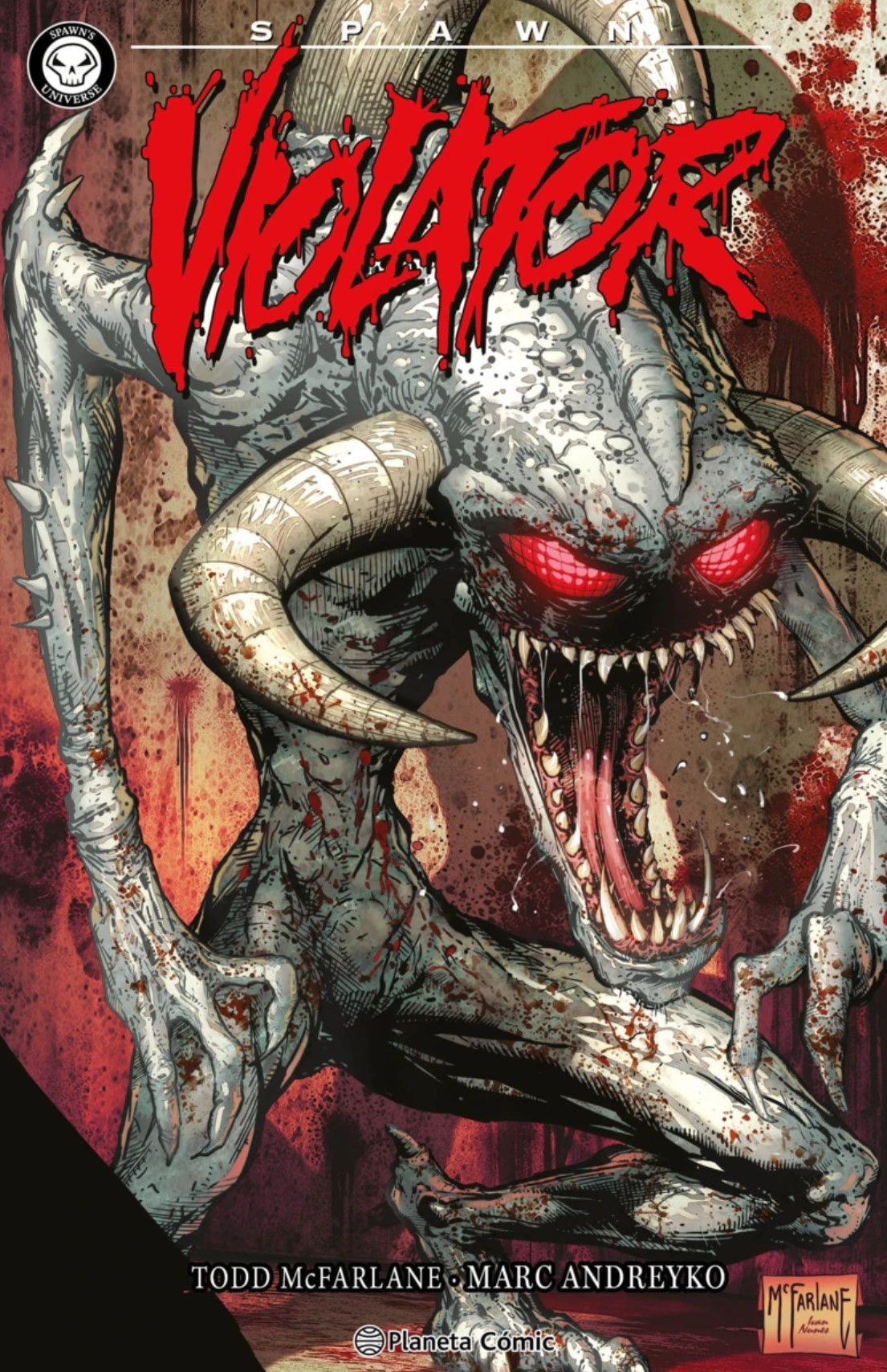 Andreiko es ambicioso, y quizá esa ambición es la que hace que la serie tenga huecos que quedan por rellenar. Nos lleva al principio de los tiempos, cuando no existe Vialotor y completa un origen aferrado a la religión cristiana, la del cielo y el infierno, la de Dios como creador de todo lo que vemos, de la que podemos ver incontables versiones en distintos universos de ficción. Sin haber visto a Violator, ese episodio es la clave de la serie, porque es el que ofrece un contraste evidente con respecto al personaje final, es el que marca la existencia de un camino para llegar a la criatura viciosa y violenta que conocemos. Es verdad que no recorremos todos los estadios por los que pasa y que el uso de elipsis es tan necesario como complejo de manejar, precisamente por la información que se queda por el camino, que seguro dará para que en un momento u otro un escritor, sea Andreyko, Todd McFarkane o cualquier otro, recoge el guante. Y es verdad también que las elecciones, incluso la forma de escribir de Andreyko, a veces parco en palabras y otras veces mucho más abundante, puede hacernos ver una clara irregularidad en la serie, pero en el fondo cada capítulo sabe adquirir la suficiente relevancia para componer una mitología más o menos propia dentro del universo de Spawn, que parece ser la aspiración real de Violator.
