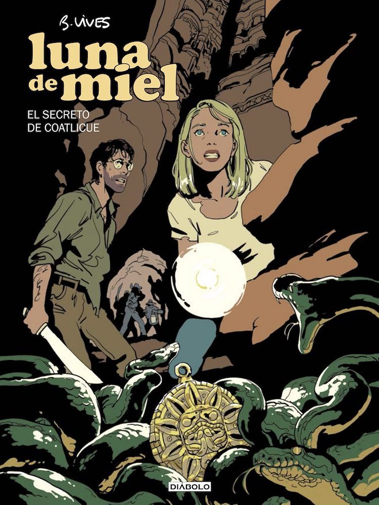 Con o sin polémicas, Bastien Vivès hace ya tiempo que se ha ganado el derecho a hacer los cómics que quiera. En realidad, eso es algo que deberíamos garantizarles a todos los autores, pero es que en el caso de Vivès ha hecho tanto y en tantos géneros que cualquier capricho se le ocurra tiene hueco sin problema en su trayectoria. Luna de miel hay que verlo así, porque si lo analizamos en frío veremos que es una absoluta locura. Podríamos achacarle una enorme falta de realismo, un recurso continuo a la casualidad, unos personajes que no sabemos si se toman en serio a ellos mismos e incluso una ausencia de explicaciones que casi parece más propia de la vaguería que del misterio. Pero resulta que Vivès es tan condenadamente buen narrador que hasta eso le funciona. Lo hizo en el primer álbum de la serie, El beso de la esfinge (aquí, su reseña), y lo hace de nuevo en el segundo, El secreto de Coatlicue, con características similares, pero a la vez con muchas sorpresas en el camino. No intentemos encontrarle la lógica, porque es irrelevante, lo que importa, lo que prima, lo que entusiasma, es el ritmo con el que narra Vivès, lo entretenido que es todo lo que cuenta, el carisma que desprenden sus protagonistas casi sin darnos cuenta y lo exótico de sus aventuras casi involuntarias, carentes en este caso de más objetivo que la supervivencia.